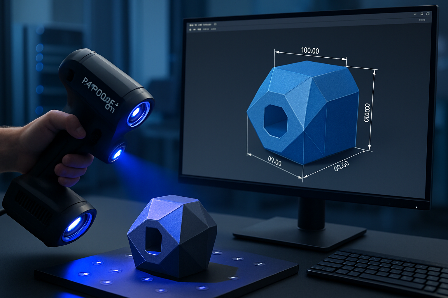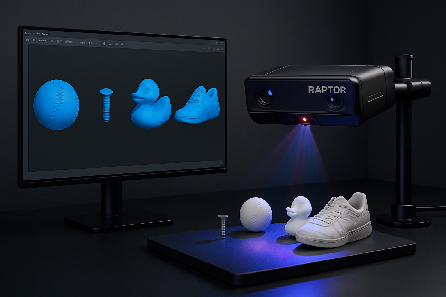 Profesjonalne skanowanie 3D to szybkie i dokładne odwzorowanie obiektów w formie cyfrowej, realizowane na najnowszym skanerze Creality Raptor, który zapewnia precyzję metrologiczną do 0,02 mm oraz możliwość skanowania bez znaczników dzięki innowacyjnej technologii 7 niebieskich linii laserowych i podczerwieni.